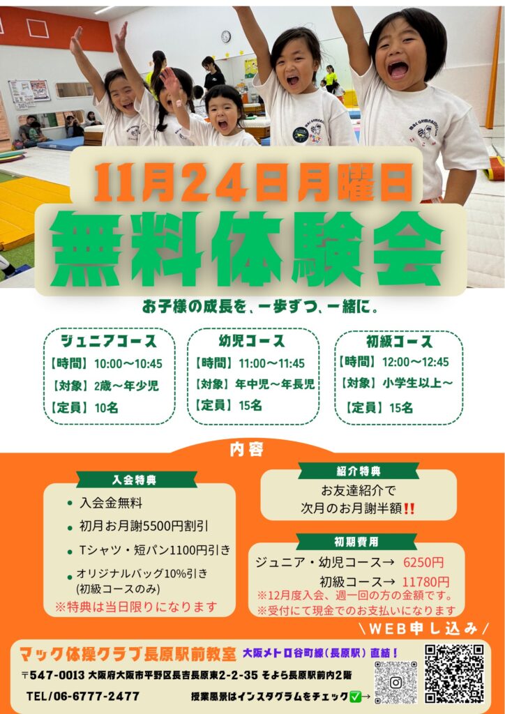 11月24日(月)の午前中に参加費無料の体験会を行います!!