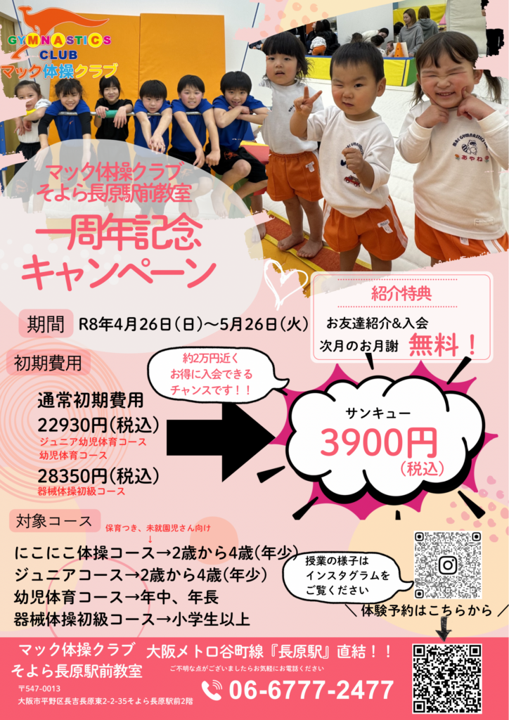 そよら長原駅前教室1周年記念として超超超お得な体験キャンペーンを実施します!!