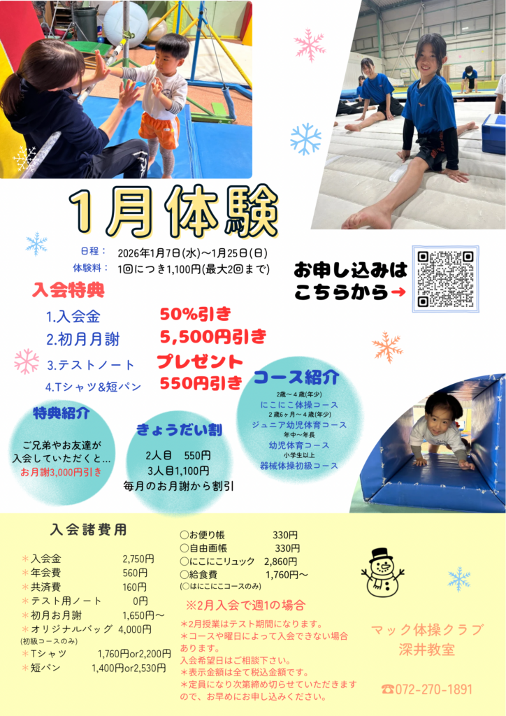 ※定員のため、ご入会できない場合がございます。曜日等、事前にご相談ください。